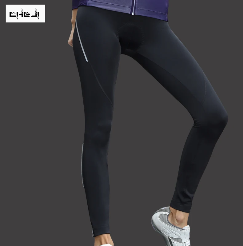 Promo CHEJI Cycling Pants Women Long Bicycle Pants High Quality Mtb Road Bike 3/4 Tights Black Cycling Lo