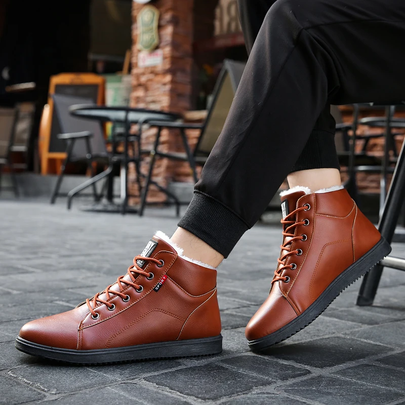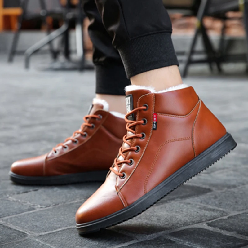 UPUPER 2020 Men's Winter Shoes Leather Ankle Boots For Men Winter Sneakers With Fur Plush Warm Shoe only US $13.26
