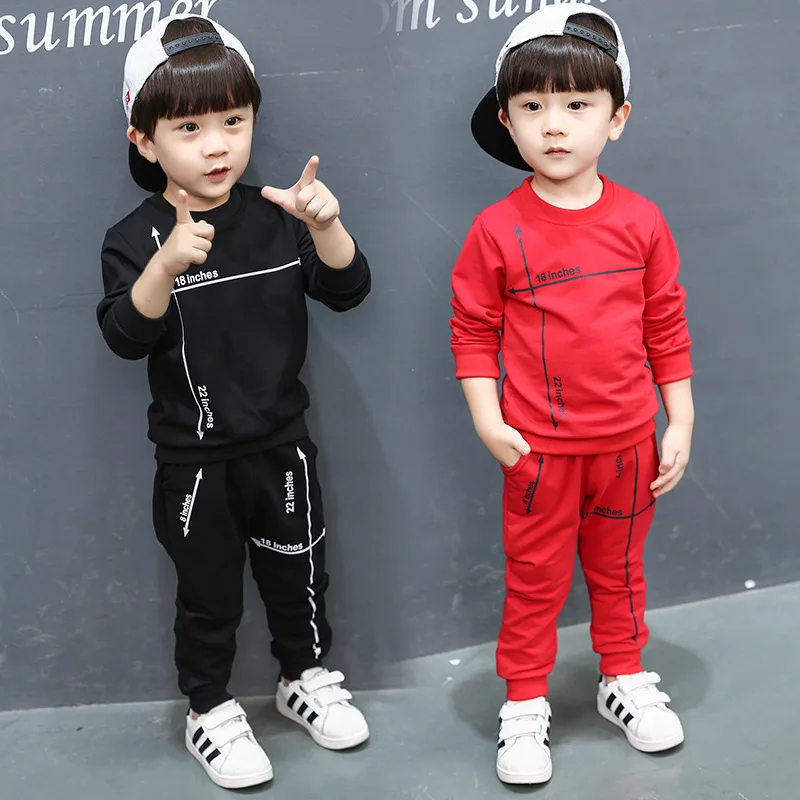 Special Promo Hot Boy Clothing 2018 Autumn Explosion Models Boys Suit Casual Long-Sleeved Sweater + Trousers Red